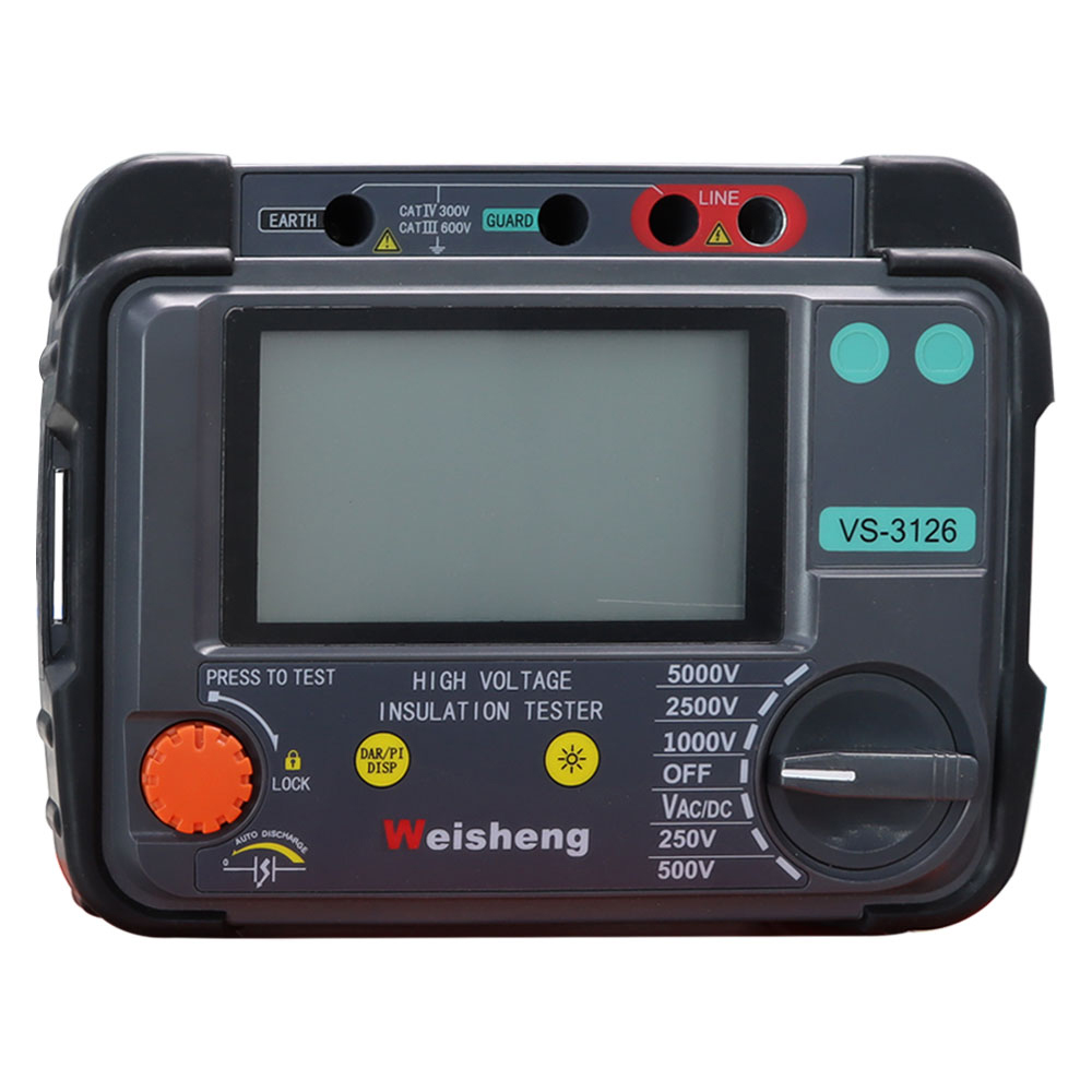 Весхине® ВС-3126 се напаја батеријамаВисоконапонски тестер изолацијеса дигиталним и аналогним лучним дисплејом, дизајнираним за испитивање отпорности изолације високог напона у одржавању и сервисирању каблова, машина за ротирање постројења, трансформатора, расклопних уређаја и индустријских апликација.