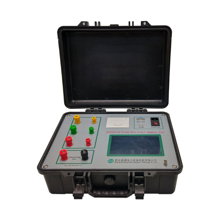 Весхине® реактанса цурења у трансформатору, трансформатору ЛВ краткоспојни тестер импедансе није опремљен екстерним регулатором напона и усваја примарни начин повезивања. Он започиње трофазно тестирање и аутоматски израчунава проценат грешке импедансе када се унесе параметар и пружа интуитивне резултате. Ово је брзи тестер који детектује деформацију намотаја трансформатора на лицу места.